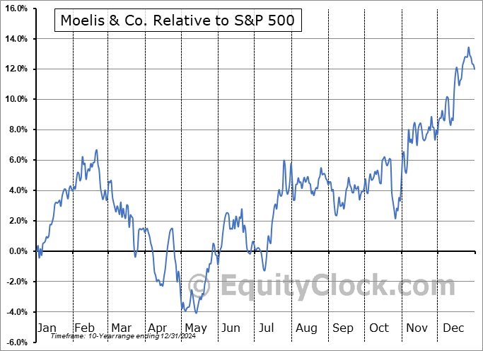 Analysis of the Moelis & Co. (NYSE:MC) seasonal charts above shows that a Buy Date of November 19 and a Sell Date of March 1 has resulted in a geometric average return of 6.5% above the benchmark rate of the S&P 500 Total Return Index over the past 10 years. This seasonal timeframe has shown positive results compared to the benchmark in 9 of those periods. This is an excellent rate of success and the return strongly outperforms the relative buy-and-hold performance of the stock over the past 10 years by an average of 3.66% per year.