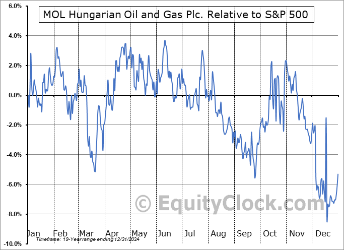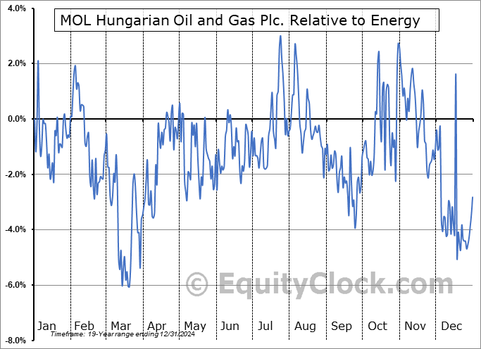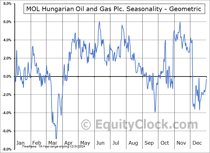 Analysis of the MOL Hungarian Oil and Gas Plc. (OTCMKT:MGYOY) seasonal charts above shows that a Buy Date of March 20 and a Sell Date of June 11 has resulted in a geometric average return of 8.97% above the benchmark rate of the S&P 500 Total Return Index over the past 19 years. This seasonal timeframe has shown positive results compared to the benchmark in 16 of those periods. This is a very good rate of success and the return strongly outperforms the relative buy-and-hold performance of the stock over the past 19 years by an average of 18.96% per year.