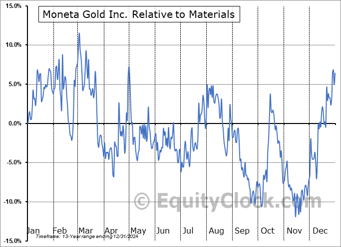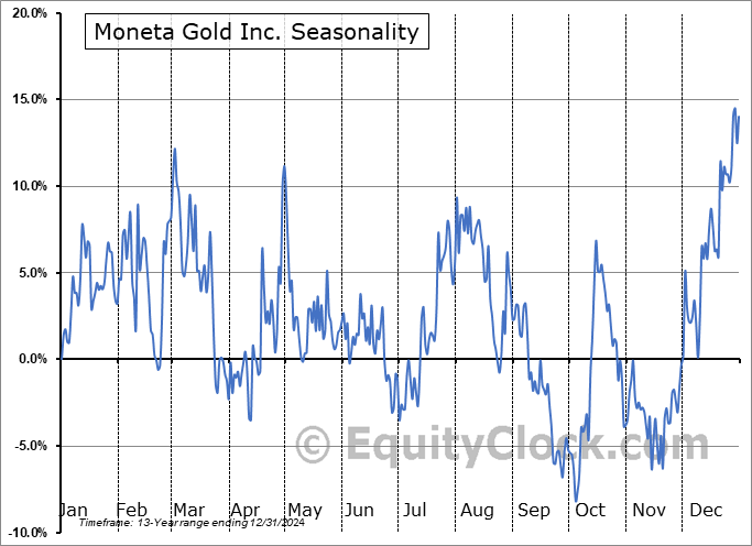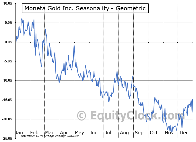 Moneta Gold Inc. (OTCMKT:STLRF) Seasonal Chart