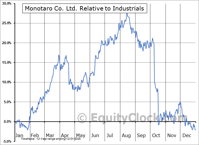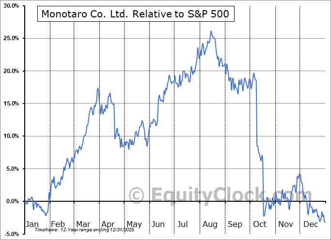 Analysis of the Monotaro Co. Ltd. (OTCMKT:MONOY) seasonal charts above shows that a Buy Date of February 12 and a Sell Date of May 3 has resulted in a geometric average return of 5.68% above the benchmark rate of the S&P 500 Total Return Index over the past 11 years. This seasonal timeframe has shown positive results compared to the benchmark in 10 of those periods. This is an excellent rate of success and the return strongly outperforms the relative buy-and-hold performance of the stock over the past 11 years by an average of 18.5% per year.