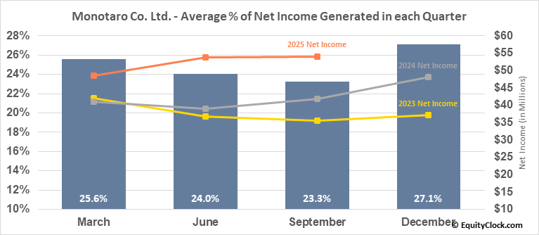 Monotaro Co. Ltd. (OTCMKT:MONOY) Seasonal Chart