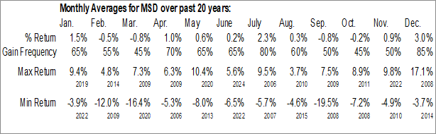 Morgan Stanley Emerging Markets Debt Fund Inc. (NYSE:MSD) Seasonal Chart