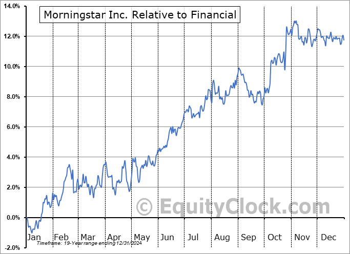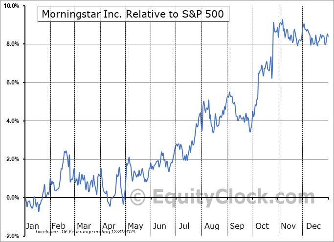 Analysis of the Morningstar Inc. (NASD:MORN) seasonal charts above shows that a Buy Date of June 21 and a Sell Date of November 2 has resulted in a geometric average return of 4.3% above the benchmark rate of the S&P 500 Total Return Index over the past 19 years. This seasonal timeframe has shown positive results compared to the benchmark in 14 of those periods. This is a good rate of success and the return outperforms the relative buy-and-hold performance of the stock over the past 19 years by an average of 1.81% per year.
