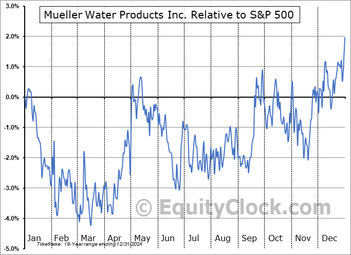 Analysis of the Mueller Water Products Inc. (NYSE:MWA) seasonal charts above shows that a Buy Date of February 28 and a Sell Date of May 18 has resulted in a geometric average return of 3.58% above the benchmark rate of the S&P 500 Total Return Index over the past 18 years. This seasonal timeframe has shown positive results compared to the benchmark in 13 of those periods. This is a good rate of success and the return strongly outperforms the relative buy-and-hold performance of the stock over the past 18 years by an average of 9.33% per year.