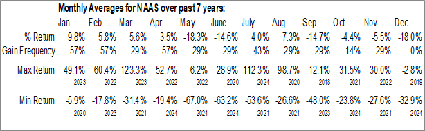 A word of caution: Only 7 years of data is available for shares of NAAS, perhaps insufficient to create a seasonal profile that accurately gauges the seasonal tendencies influencing the investment. Ideally, while 20 years is preferred, at least 10 years of data is required to perform a seasonal analysis that is considered to be reliable for future seasonal periods.