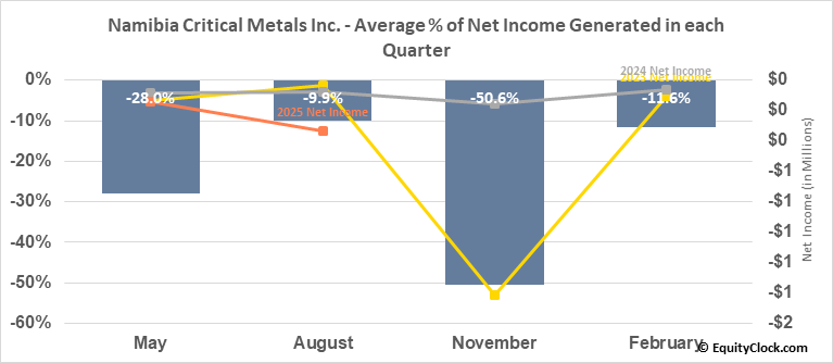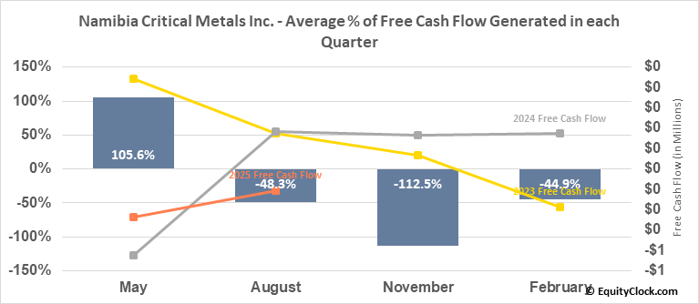 Namibia Critical Metals Inc. (OTCMKT:NMREF) Seasonal Chart