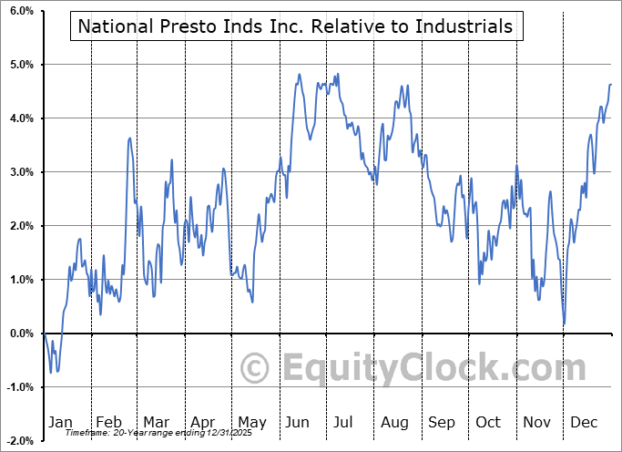 Analysis of the National Presto Inds Inc. (NYSE:NPK) seasonal charts above shows that a Buy Date of December 1 and a Sell Date of March 22 has resulted in a geometric average return of 4.88% above the benchmark rate of the S&P 500 Total Return Index over the past 20 years. This seasonal timeframe has shown positive results compared to the benchmark in 16 of those periods. This is a very good rate of success and the return strongly outperforms the relative buy-and-hold performance of the stock over the past 20 years by an average of 4.64% per year.