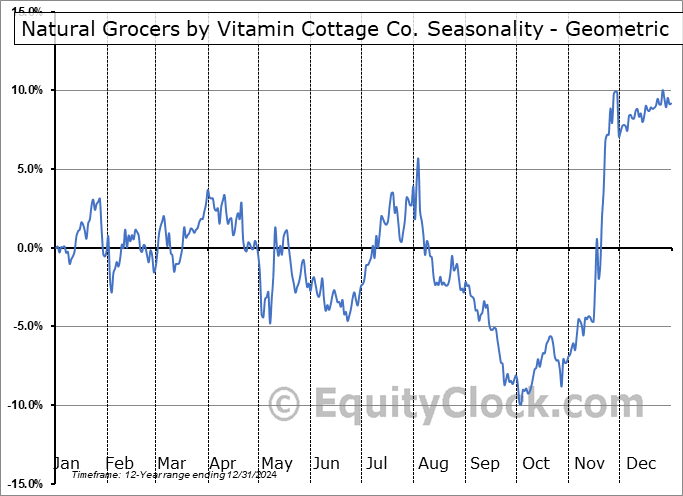 Natural Grocers by Vitamin Cottage Co. (NYSE:NGVC) Seasonal Chart