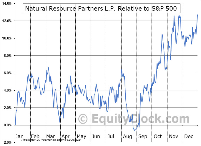 Analysis of the Natural Resource Partners L.P. (NYSE:NRP) seasonal charts above shows that a Buy Date of October 1 and a Sell Date of January 7 has resulted in a geometric average return of 2.86% above the benchmark rate of the S&P 500 Total Return Index over the past 20 years. This seasonal timeframe has shown positive results compared to the benchmark in 16 of those periods. This is a very good rate of success and the return strongly outperforms the relative buy-and-hold performance of the stock over the past 20 years by an average of 9% per year.
