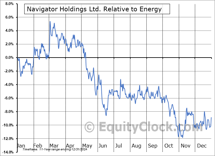 Analysis of the Navigator Holdings Ltd. (NYSE:NVGS) seasonal charts above shows that a Buy Date of January 28 and a Sell Date of April 27 has resulted in a geometric average return of 3.97% above the benchmark rate of the S&P 500 Total Return Index over the past 11 years. This seasonal timeframe has shown positive results compared to the benchmark in 9 of those periods. This is a very good rate of success and the return strongly outperforms the relative buy-and-hold performance of the stock over the past 11 years by an average of 19.38% per year.