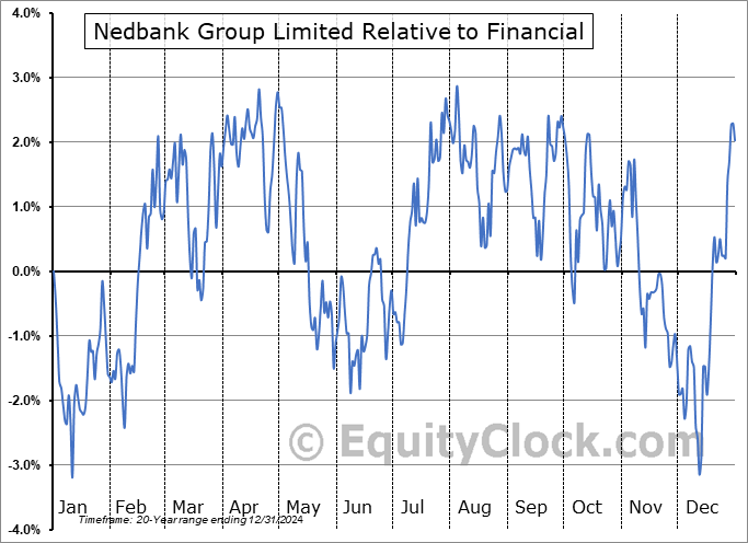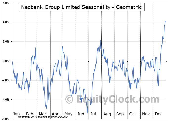 Analysis of the Nedbank Group Limited (OTCMKT:NDBKY) seasonal charts above shows that a Buy Date of September 16 and a Sell Date of January 28 has resulted in a geometric average return of 3.55% above the benchmark rate of the S&P 500 Total Return Index over the past 20 years. This seasonal timeframe has shown positive results compared to the benchmark in 15 of those periods. This is a good rate of success and the return strongly outperforms the relative buy-and-hold performance of the stock over the past 20 years by an average of 8.78% per year.