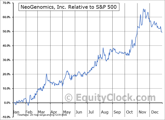 Analysis of the NeoGenomics, Inc. (NASD:NEO) seasonal charts above shows that a Buy Date of May 5 and a Sell Date of August 1 has resulted in a geometric average return of 8.42% above the benchmark rate of the S&P 500 Total Return Index over the past 20 years. This seasonal timeframe has shown positive results compared to the benchmark in 16 of those periods. This is a very good rate of success, but the return underperforms the relative buy-and-hold performance of the stock over the past 20 years by an average of 0.17% per year.