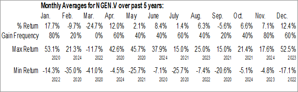 To download NGEN.V seasonal chart data, please log in or Subscribe.