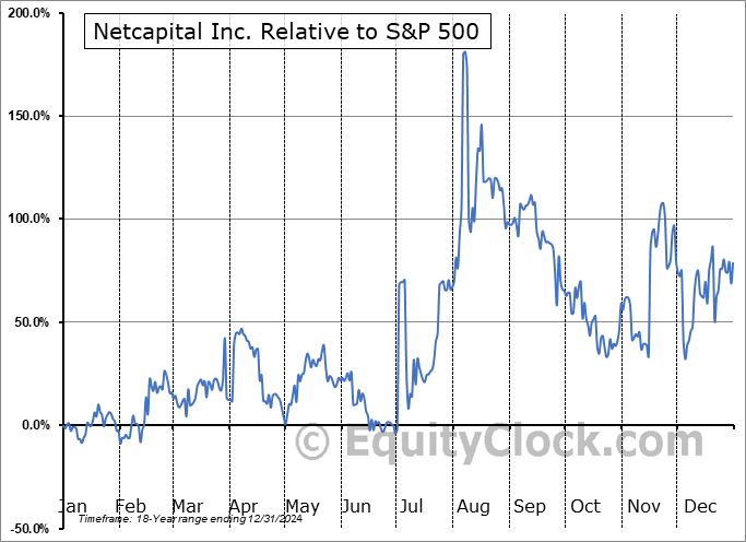 Analysis of the Netcapital Inc. (NASD:NCPL) seasonal charts above shows that a Buy Date of December 13 and a Sell Date of April 6 has resulted in a geometric average return of 5.37% above the benchmark rate of the S&P 500 Total Return Index over the past 18 years. This seasonal timeframe has shown positive results compared to the benchmark in 12 of those periods. This is a good rate of success and the return strongly outperforms the relative buy-and-hold performance of the stock over the past 18 years by an average of 105.37% per year.