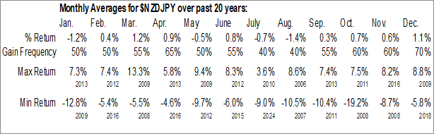 New Zealand Dollar to Japanese Yen (NZD-JPY) Seasonal Chart