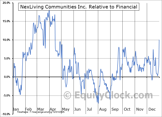 Analysis of the NexLiving Communities Inc. (TSXV:NXLV.V) seasonal charts above shows that a Buy Date of December 24 and a Sell Date of March 13 has resulted in a geometric average return of 14.79% above the benchmark rate of the S&P 500 Total Return Index over the past 6 years. This seasonal timeframe has shown positive results compared to the benchmark in 5 of those periods. This is a very good rate of success and the return strongly outperforms the relative buy-and-hold performance of the stock over the past 6 years by an average of 32.78% per year.
