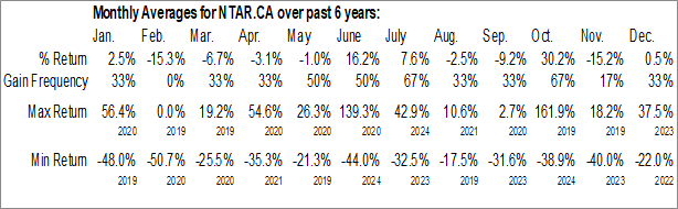 A word of caution: Only 6 years of data is available for shares of NTAR.CA, perhaps insufficient to create a seasonal profile that accurately gauges the seasonal tendencies influencing the investment. Ideally, while 20 years is preferred, at least 10 years of data is required to perform a seasonal analysis that is considered to be reliable for future seasonal periods.