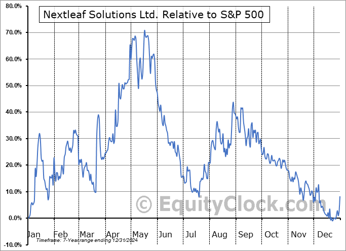 Analysis of the Nextleaf Solutions Ltd. (CSE:OILS.CA) seasonal charts above shows that a Buy Date of December 29 and a Sell Date of May 18 has resulted in a geometric average return of 45.7% above the benchmark rate of the S&P 500 Total Return Index over the past 7 years. This seasonal timeframe has shown positive results compared to the benchmark in 6 of those periods. This is a very good rate of success and the return strongly outperforms the relative buy-and-hold performance of the stock over the past 7 years by an average of 61.97% per year.