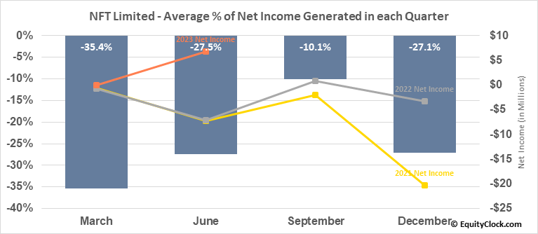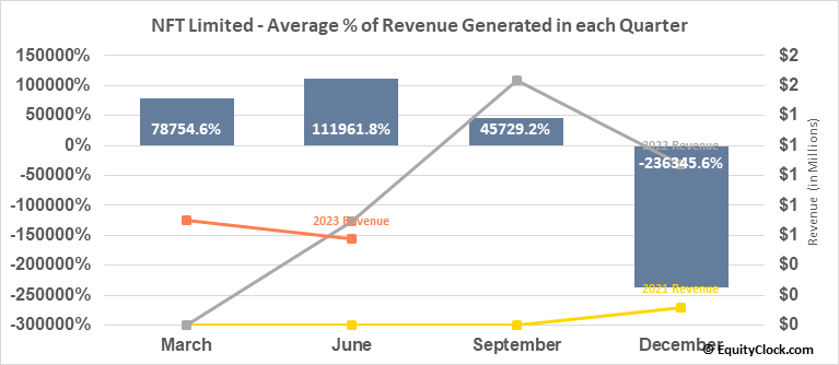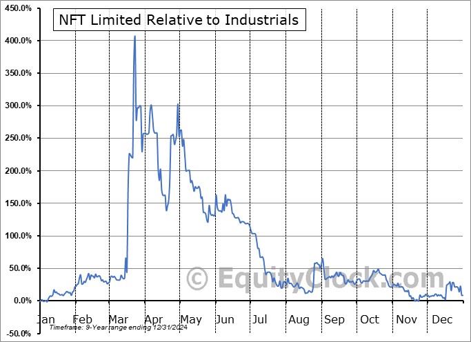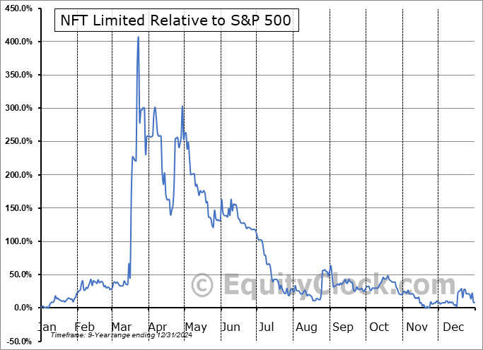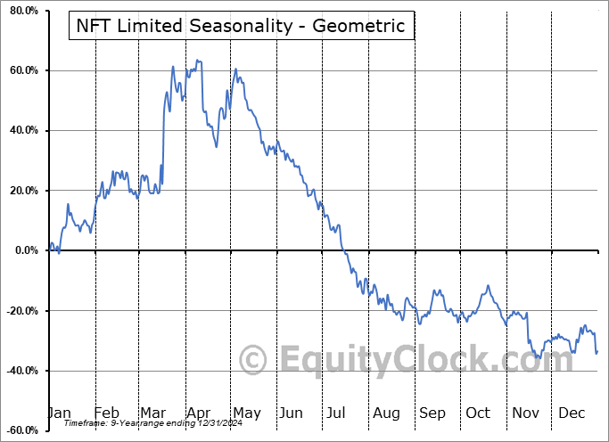 Analysis of the NFT Limited (AMEX:MI) seasonal charts above shows that a Buy Date of December 30 and a Sell Date of March 19 has resulted in a geometric average return of 55.12% above the benchmark rate of the S&P 500 Total Return Index over the past 9 years. This seasonal timeframe has shown positive results compared to the benchmark in 7 of those periods. This is a good rate of success and the return strongly outperforms the relative buy-and-hold performance of the stock over the past 9 years by an average of 97.14% per year.