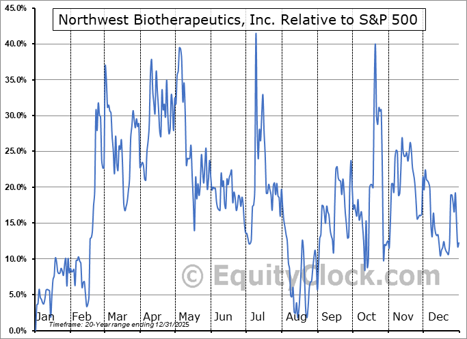 Analysis of the Northwest Biotherapeutics, Inc. (OTCMKT:NWBO) seasonal charts above shows that a Buy Date of December 20 and a Sell Date of March 10 has resulted in a geometric average return of 18.62% above the benchmark rate of the S&P 500 Total Return Index over the past 20 years. This seasonal timeframe has shown positive results compared to the benchmark in 13 of those periods. This is a good rate of success and the return strongly outperforms the relative buy-and-hold performance of the stock over the past 20 years by an average of 42.3% per year.