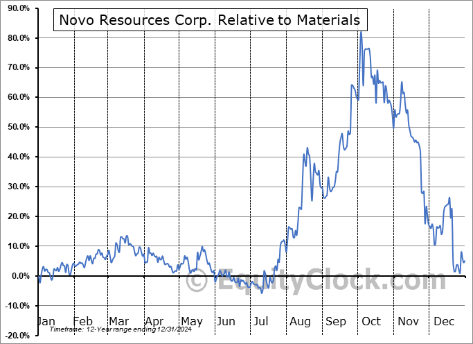 Analysis of the Novo Resources Corp. (OTCMKT:NSRPF) seasonal charts above shows that a Buy Date of December 16 and a Sell Date of March 7 has resulted in a geometric average return of 7.51% above the benchmark rate of the S&P 500 Total Return Index over the past 12 years. This seasonal timeframe has shown positive results compared to the benchmark in 7 of those periods. This is a fair rate of success and the return strongly outperforms the relative buy-and-hold performance of the stock over the past 12 years by an average of 36.7% per year.