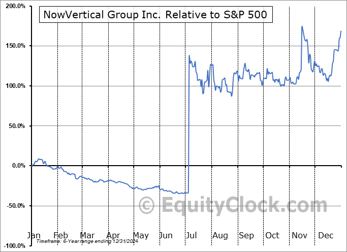 Analysis of the NowVertical Group Inc. (TSXV:NOW.V) seasonal charts above shows that a Buy Date of June 27 and a Sell Date of November 23 has resulted in a geometric average return of 58.18% above the benchmark rate of the S&P 500 Total Return Index over the past 6 years. This seasonal timeframe has shown positive results compared to the benchmark in 4 of those periods. This is a good rate of success and the return strongly outperforms the relative buy-and-hold performance of the stock over the past 6 years by an average of 54.04% per year.