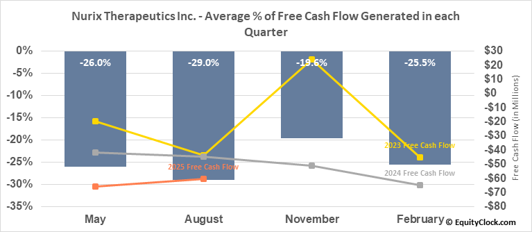 Analysis of the Nurix Therapeutics Inc. (NASD:NRIX) seasonal charts above shows that a Buy Date of March 30 and a Sell Date of August 4 has resulted in a geometric average return of 21.2% above the benchmark rate of the S&P 500 Total Return Index over the past 4 years. This seasonal timeframe has shown positive results compared to the benchmark in 4 of those periods. This is an excellent rate of success and the return strongly outperforms the relative buy-and-hold performance of the stock over the past 4 years by an average of 44.55% per year.