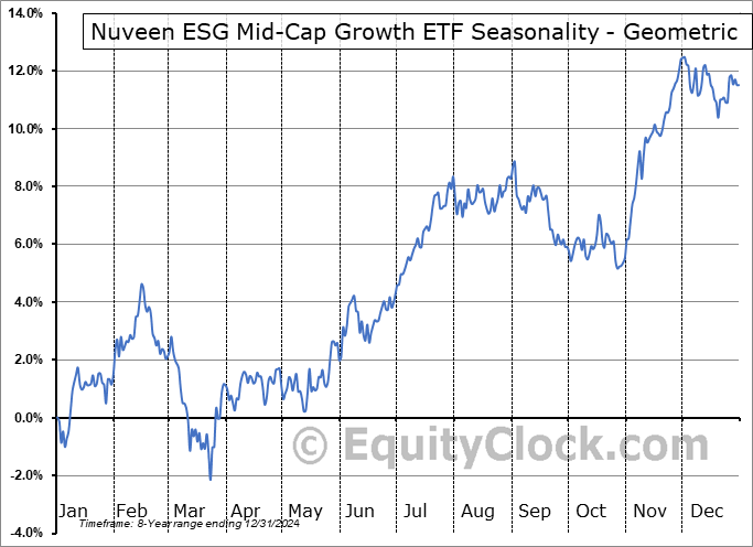 Nuveen ESG Mid-Cap Growth ETF (AMEX:NUMG) Seasonal Chart