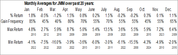 Analysis of the Nuveen Multi-Market Income Fund, Inc. (NYSE:JMM) seasonal charts above shows that a Buy Date of November 12 and a Sell Date of January 31 has resulted in a geometric average return of 1.88% above the benchmark rate of the S&P 500 Total Return Index over the past 20 years. This seasonal timeframe has shown positive results compared to the benchmark in 14 of those periods. This is a good rate of success and the return strongly outperforms the relative buy-and-hold performance of the stock over the past 20 years by an average of 6.8% per year.