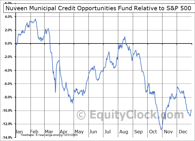 Analysis of the Nuveen Municipal Credit Opportunities Fund (NYSE:NMCO) seasonal charts above shows that a Buy Date of October 25 and a Sell Date of March 10 has resulted in a geometric average return of 4.28% above the benchmark rate of the S&P 500 Total Return Index over the past 5 years. This seasonal timeframe has shown positive results compared to the benchmark in 5 of those periods. This is an excellent rate of success and the return strongly outperforms the relative buy-and-hold performance of the stock over the past 5 years by an average of 18.54% per year.
