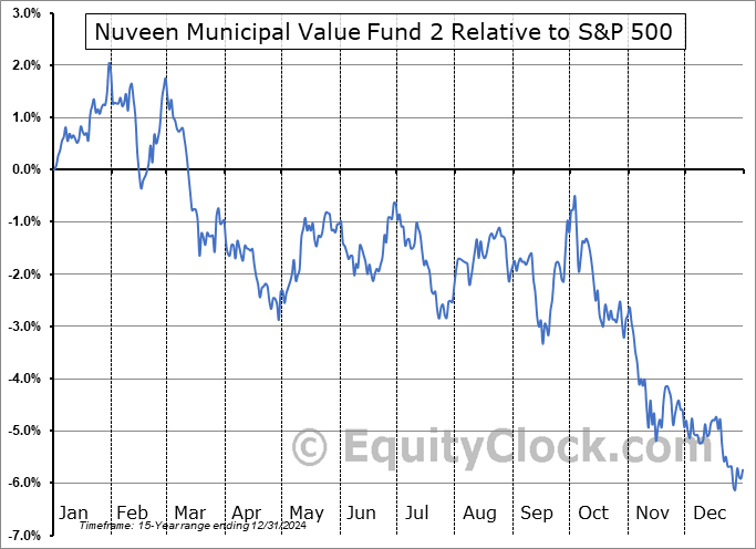 Analysis of the Nuveen Municipal Value Fund 2 (NYSE:NUW) seasonal charts above shows that a Buy Date of July 15 and a Sell Date of October 3 has resulted in a geometric average return of 1.59% above the benchmark rate of the S&P 500 Total Return Index over the past 15 years. This seasonal timeframe has shown positive results compared to the benchmark in 8 of those periods. This is a poor rate of success and the return strongly outperforms the relative buy-and-hold performance of the stock over the past 15 years by an average of 10.55% per year.