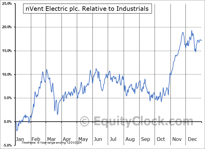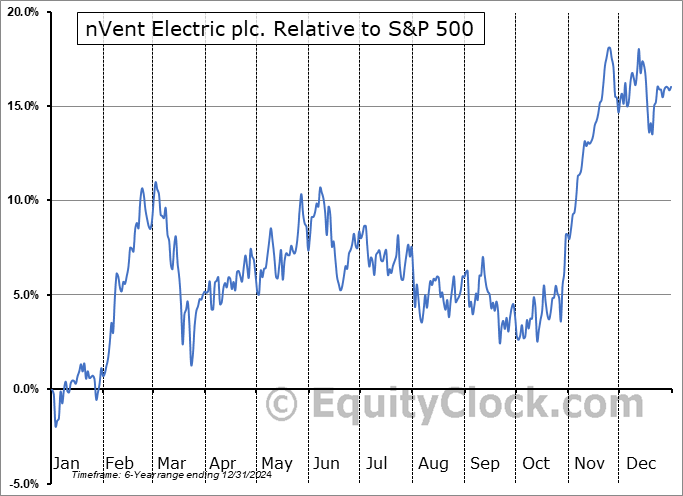 Analysis of the nVent Electric plc. (NYSE:NVT) seasonal charts above shows that a Buy Date of October 13 and a Sell Date of March 1 has resulted in a geometric average return of 20.01% above the benchmark rate of the S&P 500 Total Return Index over the past 6 years. This seasonal timeframe has shown positive results compared to the benchmark in 6 of those periods. This is an excellent rate of success and the return strongly outperforms the relative buy-and-hold performance of the stock over the past 6 years by an average of 14.67% per year.