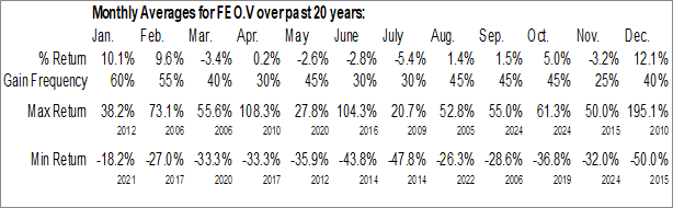 To download FEO.V seasonal chart data, please log in or Subscribe.