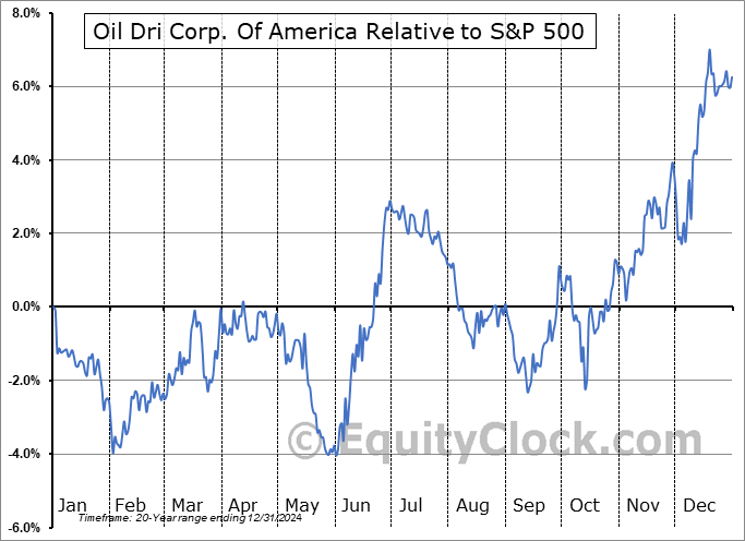Oil Dri Corp. Of America (NYSE:ODC) Seasonal Chart