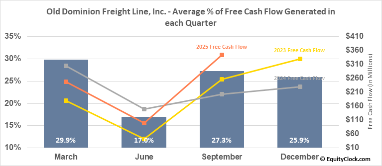 To download ODFL seasonal chart data, please log in or Subscribe.