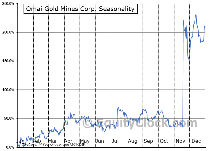 Omai Gold Mines Corp. (TSXV:OMG.V) Seasonal Chart