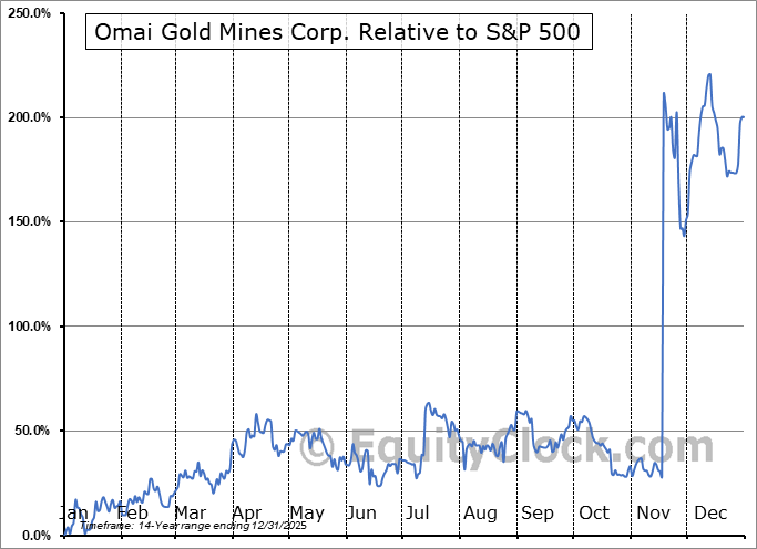 Analysis of the Omai Gold Mines Corp. (TSXV:OMG.V) seasonal charts above shows that a Buy Date of December 24 and a Sell Date of March 13 has resulted in a geometric average return of 25.42% above the benchmark rate of the S&P 500 Total Return Index over the past 13 years. This seasonal timeframe has shown positive results compared to the benchmark in 10 of those periods. This is a good rate of success and the return strongly outperforms the relative buy-and-hold performance of the stock over the past 13 years by an average of 34.61% per year.