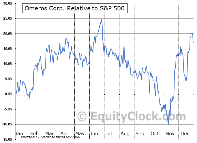 Analysis of the Omeros Corp. (NASD:OMER) seasonal charts above shows that a Buy Date of October 30 and a Sell Date of March 7 has resulted in a geometric average return of 15.67% above the benchmark rate of the S&P 500 Total Return Index over the past 15 years. This seasonal timeframe has shown positive results compared to the benchmark in 12 of those periods. This is a very good rate of success and the return strongly outperforms the relative buy-and-hold performance of the stock over the past 15 years by an average of 25.58% per year.