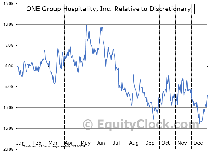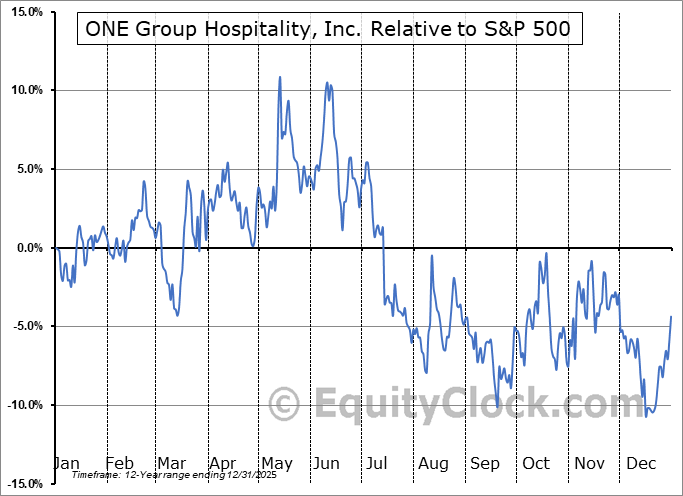 Analysis of the ONE Group Hospitality, Inc. (NASD:STKS) seasonal charts above shows that a Buy Date of October 24 and a Sell Date of January 13 has resulted in a geometric average return of 5.86% above the benchmark rate of the S&P 500 Total Return Index over the past 11 years. This seasonal timeframe has shown positive results compared to the benchmark in 8 of those periods. This is a good rate of success and the return strongly outperforms the relative buy-and-hold performance of the stock over the past 11 years by an average of 22.81% per year.