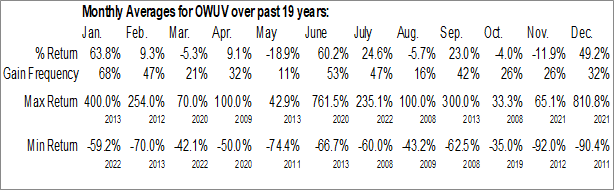 One World Universe Inc. (OTCMKT:OWUV) Seasonal Chart
