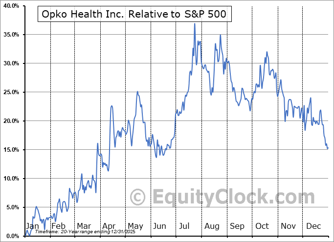 Analysis of the Opko Health Inc. (NASD:OPK) seasonal charts above shows that a Buy Date of April 25 and a Sell Date of July 23 has resulted in a geometric average return of 10.5% above the benchmark rate of the S&P 500 Total Return Index over the past 20 years. This seasonal timeframe has shown positive results compared to the benchmark in 14 of those periods. This is a good rate of success and the return strongly outperforms the relative buy-and-hold performance of the stock over the past 20 years by an average of 13.43% per year.