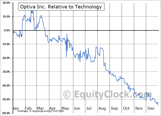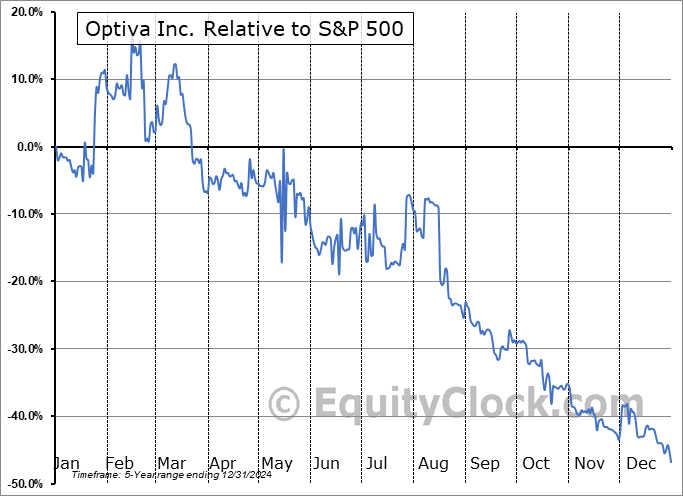 Analysis of the Optiva Inc. (TSE:OPT.TO) seasonal charts above shows that a Buy Date of December 27 and a Sell Date of March 16 has resulted in a geometric average return of 10.13% above the benchmark rate of the S&P 500 Total Return Index over the past 5 years. This seasonal timeframe has shown positive results compared to the benchmark in 3 of those periods. This is a fair rate of success and the return strongly outperforms the relative buy-and-hold performance of the stock over the past 5 years by an average of 61.57% per year.