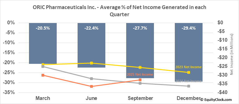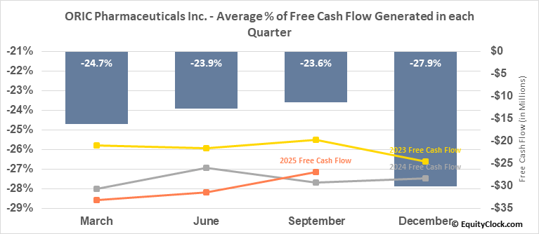 A word of caution: Only 4 years of data is available for shares of ORIC, perhaps insufficient to create a seasonal profile that accurately gauges the seasonal tendencies influencing the investment. Ideally, while 20 years is preferred, at least 10 years of data is required to perform a seasonal analysis that is considered to be reliable for future seasonal periods.