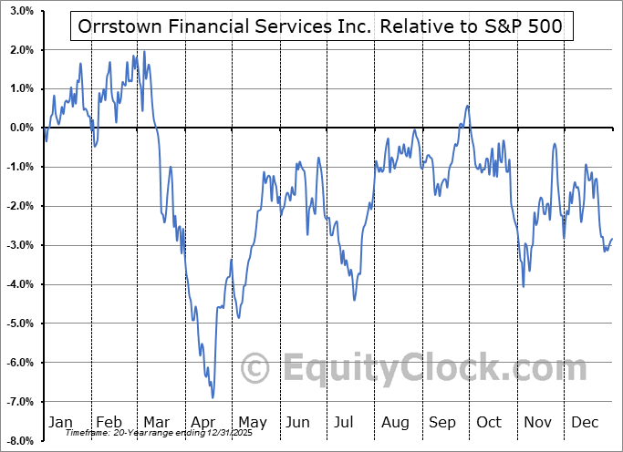 Analysis of the Orrstown Financial Services Inc. (NASD:ORRF) seasonal charts above shows that a Buy Date of April 20 and a Sell Date of September 6 has resulted in a geometric average return of 2.01% above the benchmark rate of the S&P 500 Total Return Index over the past 20 years. This seasonal timeframe has shown positive results compared to the benchmark in 15 of those periods. This is a good rate of success and the return strongly outperforms the relative buy-and-hold performance of the stock over the past 20 years by an average of 10.38% per year.