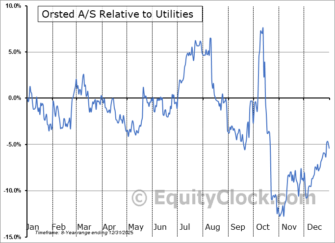 Analysis of the Orsted A/S (OTCMKT:DNNGY) seasonal charts above shows that a Buy Date of November 24 and a Sell Date of April 12 has resulted in a geometric average return of 9.3% above the benchmark rate of the S&P 500 Total Return Index over the past 7 years. This seasonal timeframe has shown positive results compared to the benchmark in 6 of those periods. This is a very good rate of success and the return strongly outperforms the relative buy-and-hold performance of the stock over the past 7 years by an average of 22.36% per year.
