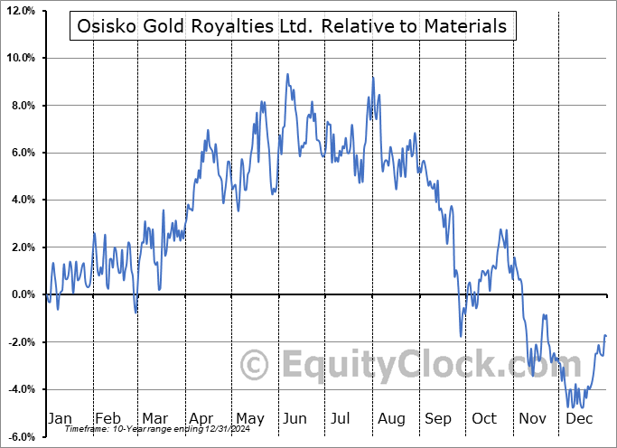Analysis of the Osisko Gold Royalties Ltd. (NYSE:OR) seasonal charts above shows that a Buy Date of December 15 and a Sell Date of May 12 has resulted in a geometric average return of 12.1% above the benchmark rate of the S&P 500 Total Return Index over the past 10 years. This seasonal timeframe has shown positive results compared to the benchmark in 9 of those periods. This is an excellent rate of success and the return strongly outperforms the relative buy-and-hold performance of the stock over the past 10 years by an average of 20.21% per year.