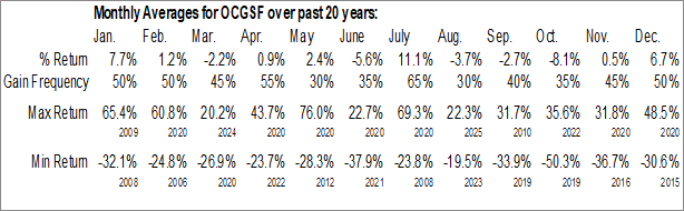 Outcrop Gold Corp. (OTCMKT:OCGSF) Seasonal Chart