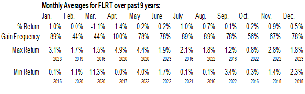A word of caution: Only 9 years of data is available for shares of FLRT, perhaps insufficient to create a seasonal profile that accurately gauges the seasonal tendencies influencing the investment. Ideally, while 20 years is preferred, at least 10 years of data is required to perform a seasonal analysis that is considered to be reliable for future seasonal periods.