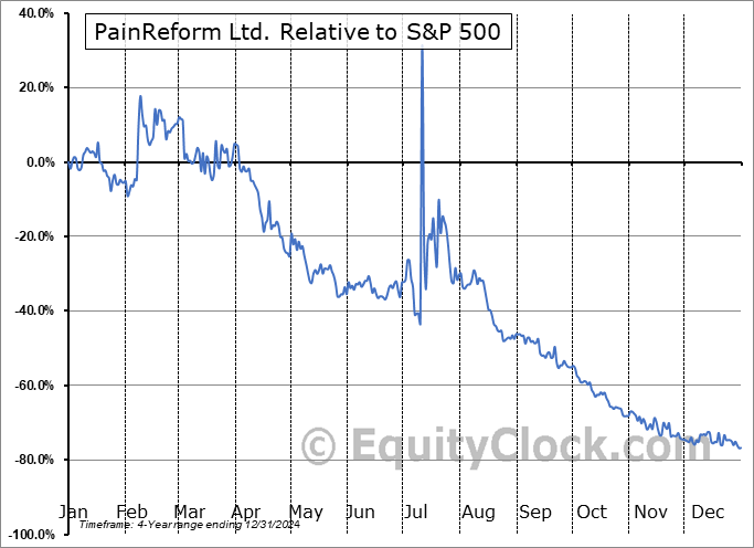 Analysis of the PainReform Ltd. (NASD:PRFX) seasonal charts above shows that a Buy Date of December 6 and a Sell Date of March 1 has resulted in a geometric average return of 4.12% above the benchmark rate of the S&P 500 Total Return Index over the past 4 years. This seasonal timeframe has shown positive results compared to the benchmark in 2 of those periods. This is a poor rate of success and the return strongly outperforms the relative buy-and-hold performance of the stock over the past 4 years by an average of 83.24% per year.
