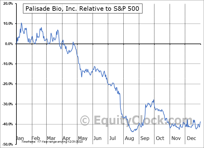 Analysis of the Palisade Bio, Inc. (NASD:PALI) seasonal charts above shows that a Buy Date of November 22 and a Sell Date of February 17 has resulted in a geometric average return of 2.97% above the benchmark rate of the S&P 500 Total Return Index over the past 16 years. This seasonal timeframe has shown positive results compared to the benchmark in 11 of those periods. This is a good rate of success and the return strongly outperforms the relative buy-and-hold performance of the stock over the past 16 years by an average of 102.97% per year.